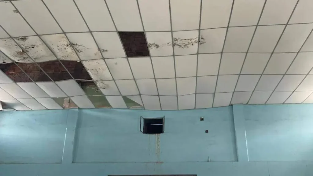 El auditorio, ubicado dentro de las instalaciones de esta histórica primaria inaugurada el 12 de enero de 1955, ha sido por décadas punto de encuentro para actividades escolares y comunitarias. Sin embargo, hoy presenta filtraciones severas en la losa, fracturas en columnas exteriores y desprendimiento de plafones, producto del abandono y la falta de mantenimiento.