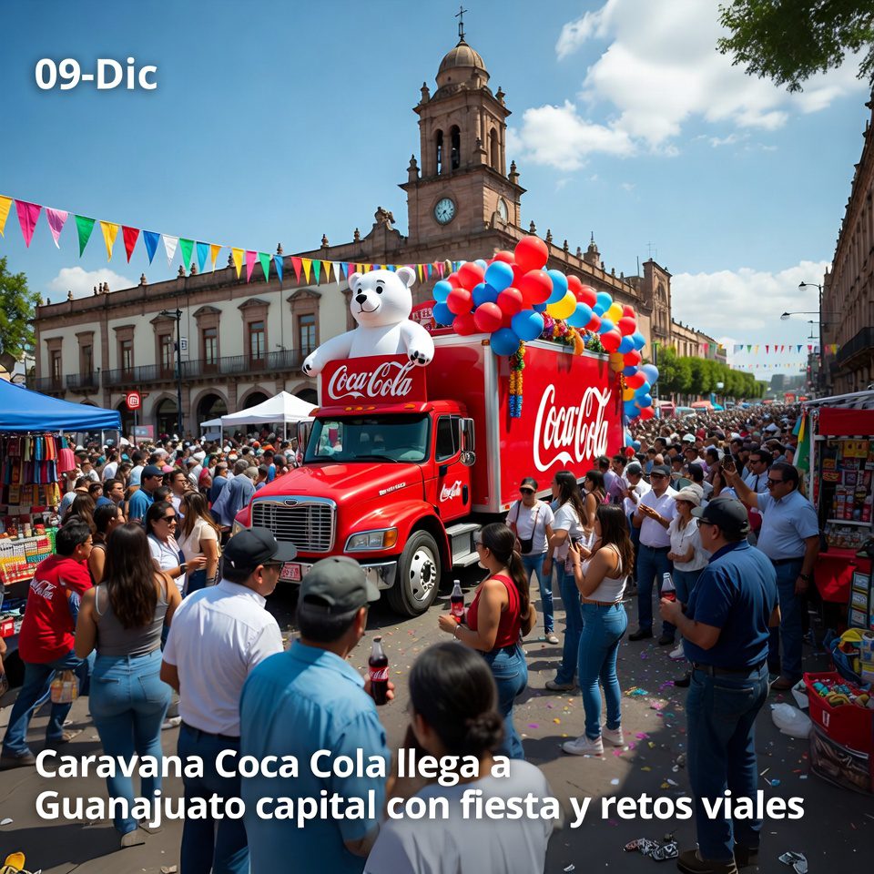 La Caravana Coca Cola 2025 recorre hoy túneles y calles de Guanajuato capital por la tarde-noche, con camiones iluminados, música navideña y actividades para miles de asistentes. El desfile promete una jornada vistosa para familias y comercios del centro histórico, que esperan aprovechar la afluencia para mejorar ventas de temporada.