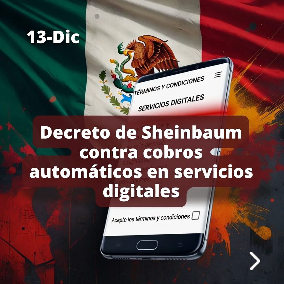 El gobierno federal puso en marcha hoy el decreto que refuerza la protección de las personas consumidoras frente a cobros automáticos y renovaciones de suscripciones digitales. A partir de este 13 de diciembre, las empresas deben informar de forma clara si un servicio implica cargos recurrentes, su monto y periodicidad, y contar con el consentimiento expreso de la persona usuaria.