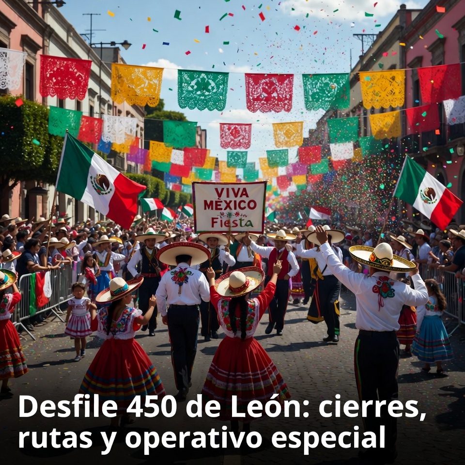 El gobierno municipal informó un operativo de seguridad por el desfile conmemorativo de los 450 años de la fundación de León. El evento se programó para el domingo 18 de enero, de 9:00 a 11:00 de la mañana. Se anunciaron cierres viales y ajustes en rutas de transporte público. La autoridad pidió planear traslados con anticipación para evitar congestionamientos. La coordinación incluirá personal de tránsito y vigilancia en puntos de alta afluencia.