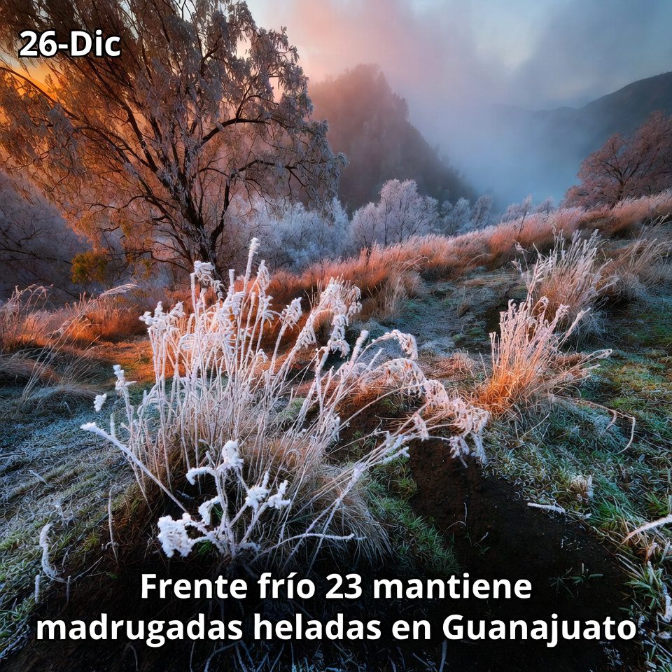 El 26 de diciembre mantuvo ambiente frío en Guanajuato por el frente frío 23, con descensos más marcados al amanecer y después del atardecer. En varias ciudades se esperaban mínimas de un dígito y valores más bajos en zonas serranas.