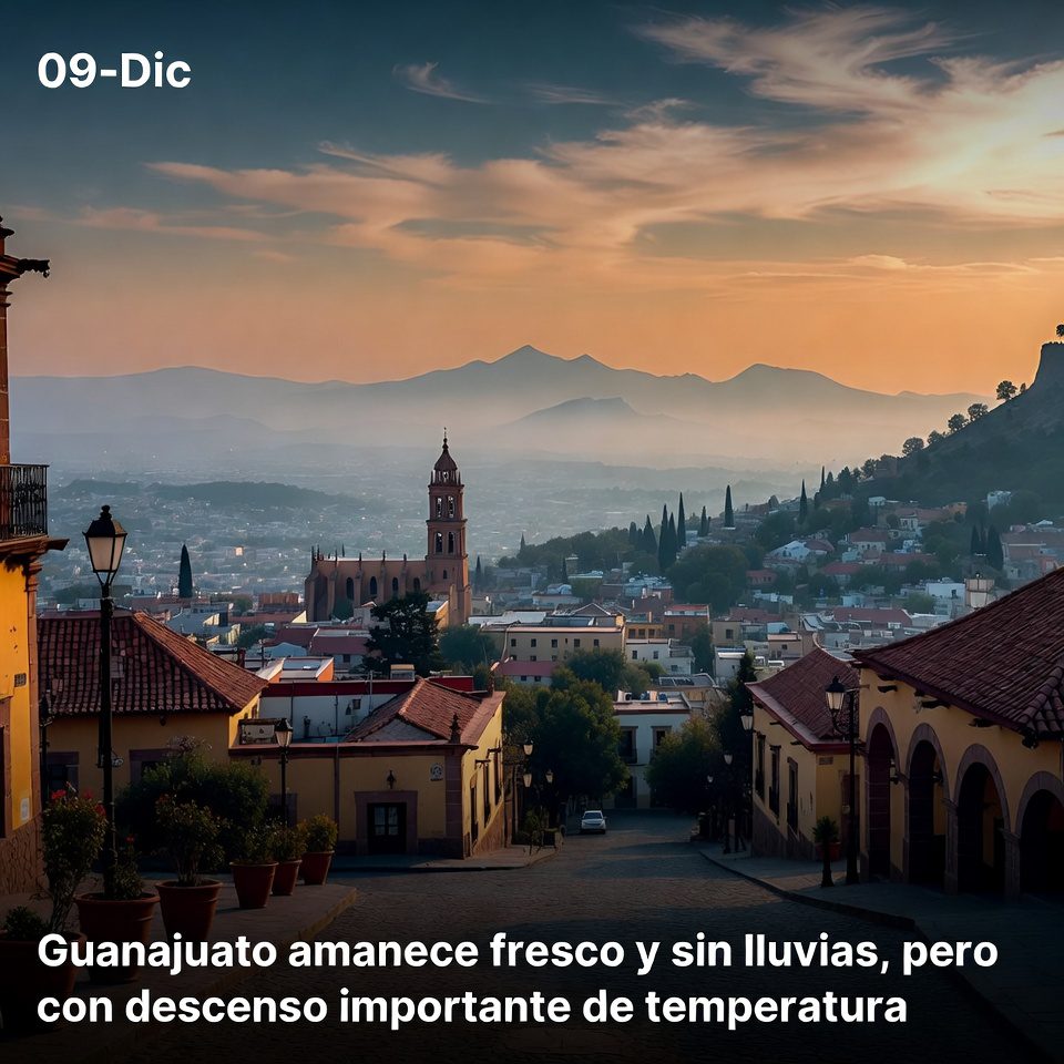 Para este 9 de diciembre, los reportes indican un amanecer frío, cielo con intervalos nubosos y baja probabilidad de lluvia, con descenso marcado de temperaturas por la noche. Municipios como León, Irapuato y Celaya registran madrugadas frías que afectan sobre todo a personas que trabajan a la intemperie y a quienes viven en viviendas frágiles.