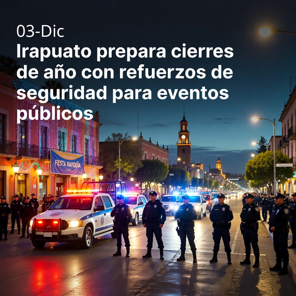 El gobierno municipal de Irapuato informó que los operativos de seguridad y prevención para las celebraciones de fin de año ya están en marcha, con coordinación entre distintas áreas del Ayuntamiento. El objetivo es garantizar que posadas, actividades navideñas, ferias y eventos masivos se desarrollen en un entorno más seguro, con presencia de cuerpos de seguridad y atención oportuna a incidentes viales o de riesgo.