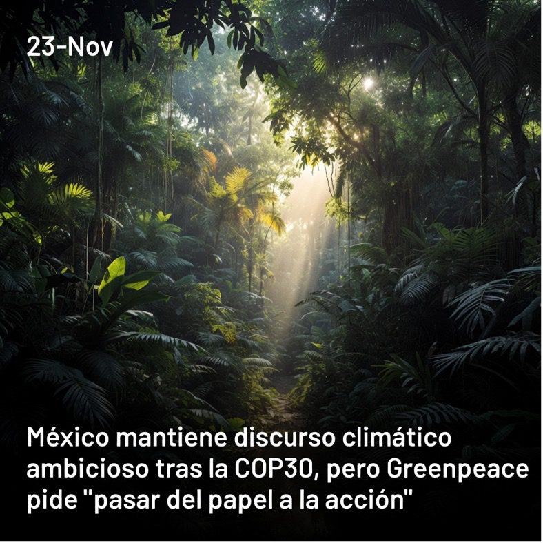 Tras el cierre de la COP30 en Belém, organizaciones ambientales retomaron el foco sobre los compromisos de México frente a la crisis climática. Greenpeace reconoció que el país presentó una hoja de ruta con metas para aumentar la participación de energías limpias y reforzar el uso de almacenamiento eléctrico hacia 2030, algo bien recibido en los debates multilaterales. Sin embargo, la organización recalcó que los resultados reales dependerán de que esos anuncios se traduzcan en proyectos concretos y en cambios visibles en el sistema eléctrico nacional.