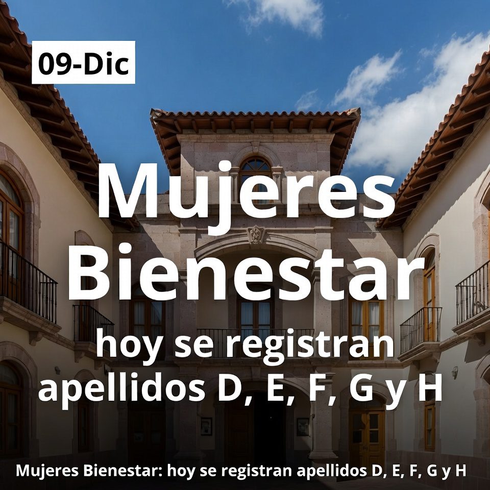 Este martes 9 de diciembre continúa el registro escalonado de la Pensión Mujeres Bienestar, programa dirigido a mujeres de 60 a 64 años que han sostenido hogares con trabajos mal pagados o cuidados no remunerados. De acuerdo con el calendario oficial, hoy corresponde el trámite a quienes tengan primer apellido con las letras D, E, F, G y H, en módulos instalados en todo el país.
