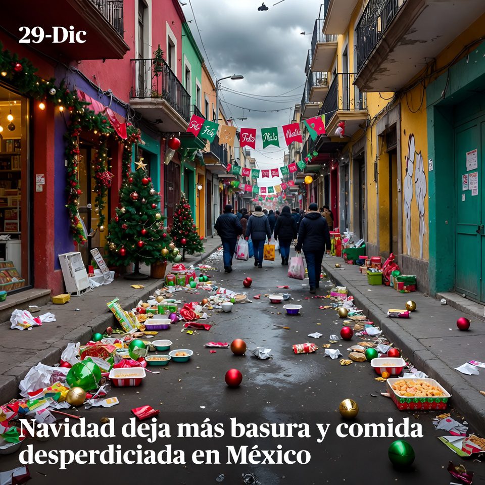 Tras las celebraciones, se reportó un repunte notable en generación de residuos y desperdicio de alimentos en México. El problema no solo es estético, también presiona recolección, rellenos sanitarios y manejo de orgánicos. Expertos han insistido en que planear porciones y separar residuos reduce el impacto.