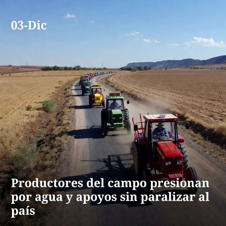 Productores agrícolas de varios estados iniciaron una “gran caravana de tractores” para expresar su rechazo a la propuesta de nueva Ley de Aguas Nacionales, que consideran les resta voz en la gestión del recurso y abre la puerta a concentrar concesiones en menos manos. Desde Zacatecas hasta otras entidades, las movilizaciones han buscado llamar la atención sobre el abandono al campo, la caída de precios por importaciones y la falta de apoyos para pequeños productores.