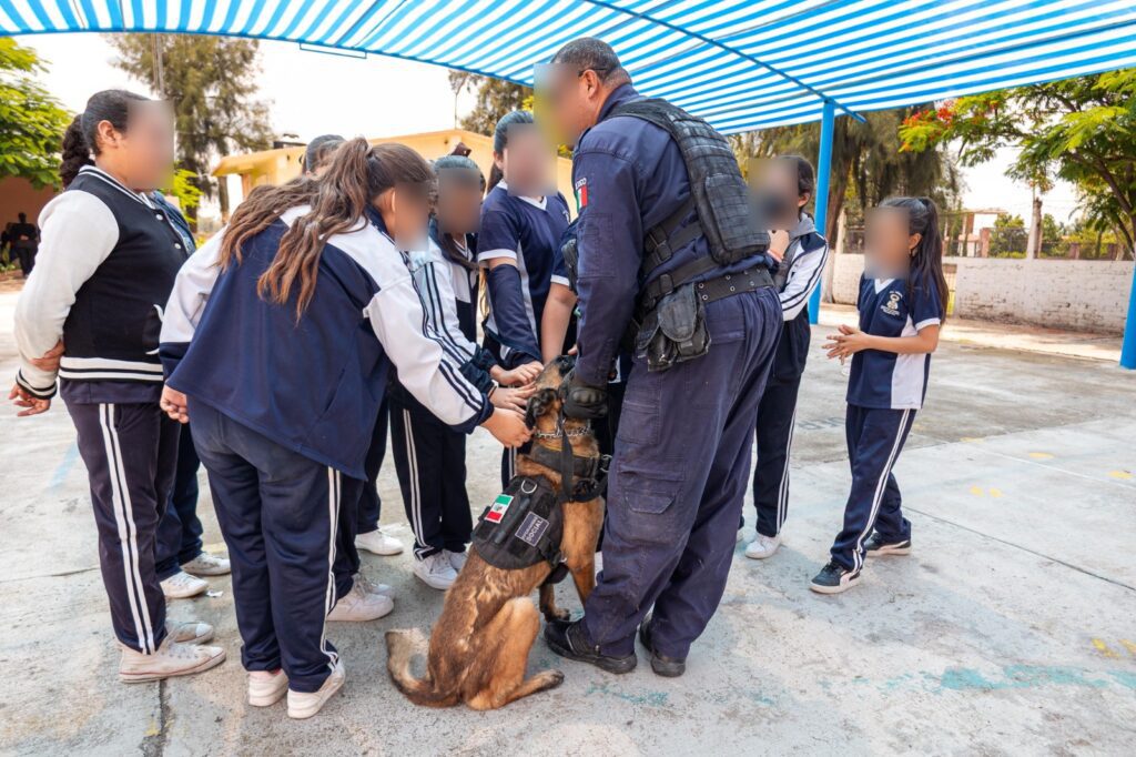 “La presencia de la Unidad K9 es una herramienta que además de llamar la atención de los niños, permite transmitirles valores de protección y seguridad de forma efectiva y cercana”, expresó Yolanda Morales, directora del plantel.