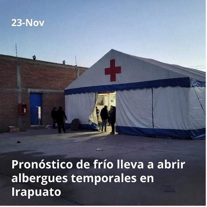 Ante el pronóstico de temperaturas bajas para la semana del 22 al 29 de noviembre, autoridades de Irapuato anunciaron la apertura de albergues temporales para apoyar a personas en situación de calle y familias que viven en viviendas con alta vulnerabilidad. El Servicio Meteorológico Nacional prevé noches frías y posibles descensos adicionales por la entrada de frentes fríos, por lo que se pidió a la población tomar precauciones, especialmente con menores, adultos mayores y personas con enfermedades respiratorias.