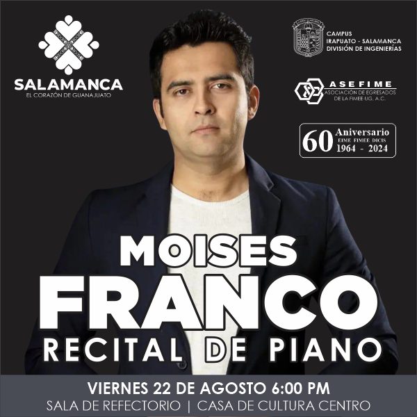 En el marco del 60 Aniversario de le EIME (Escuela de Ingeniería Mecánica y Eñéctrica), FIMEE (Facultad de Ingeniería Mecánica, Eléctrica y Electrónica) y de la DICIS (División de Ingenierías del Campus Irapuato-Salamanca), se presenta el: