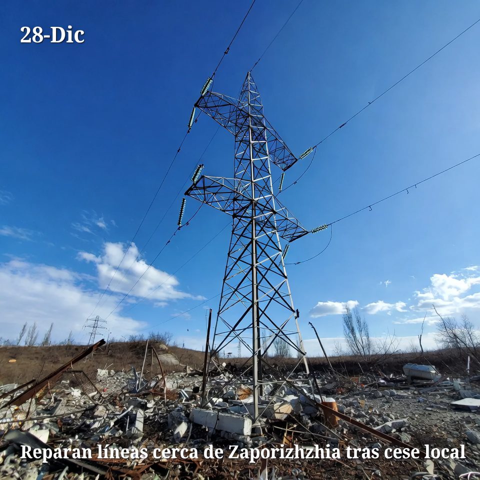 Cerca de la planta nuclear de Zaporizhzhia, en Ucrania, comenzaron reparaciones en líneas eléctricas tras un cese local que permitió trabajos técnicos durante varios días. El suministro eléctrico es crítico para la seguridad de la planta y cualquier interrupción aumenta el riesgo.