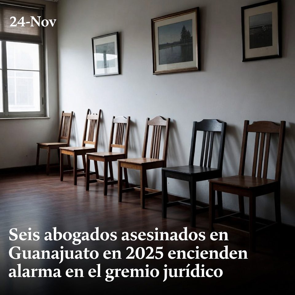 En Guanajuato, el gremio de abogados vive un momento de preocupación luego de que se confirmara que al menos seis juristas han sido asesinados en el transcurso de 2025, además de casi una veintena de agresiones no letales documentadas. Integrantes de barras y colegios de abogados señalan que muchos de los ataques están ligados a casos sensibles de defensa penal, litigios de alto impacto o disputas por tierras y negocios, donde confluyen intereses económicos y presencia del crimen organizado.