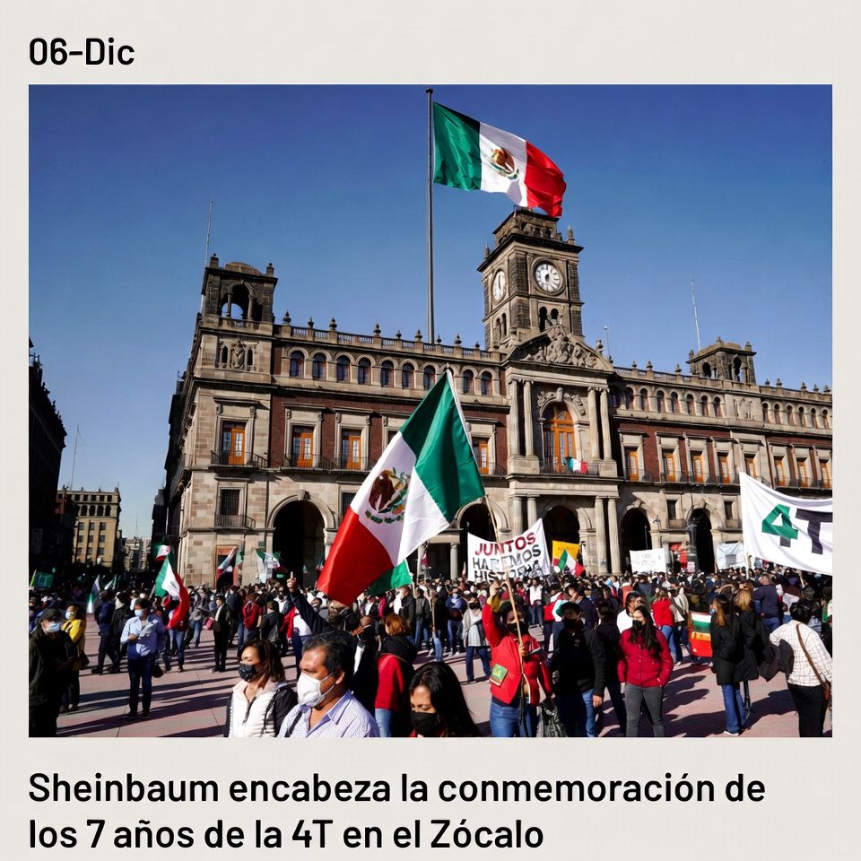 Este sábado 6 de diciembre se realiza en el Zócalo de la Ciudad de México la concentración por los siete años del inicio de la llamada Cuarta Transformación. La convocatoria fijó el encuentro a las 11:00 horas y plantea un mensaje de balance político, movilización territorial y ruta hacia 2026, en un momento donde el gobierno quiere mostrar orden interno y capacidad de convocatoria.