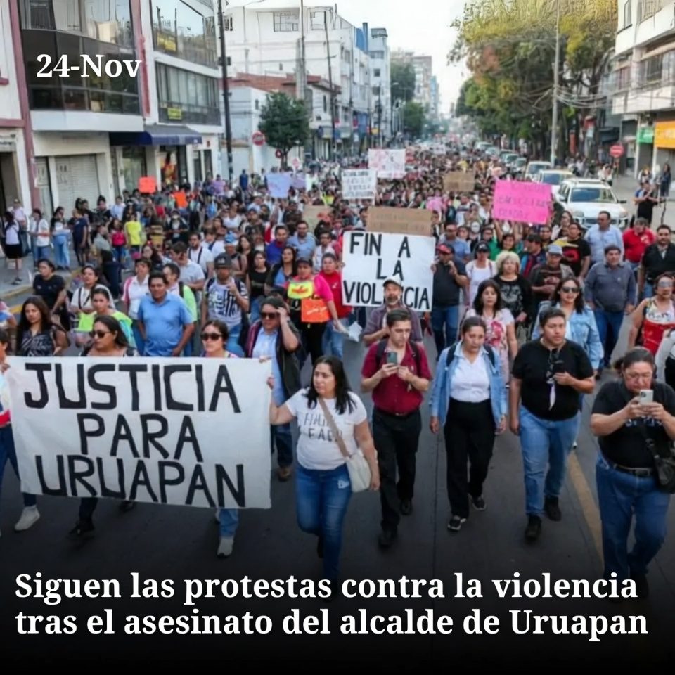 A lo largo de noviembre, continúan en distintas ciudades de México las movilizaciones motivadas por el asesinato de Carlos Manzo, alcalde de Uruapan, ocurrido a inicios de mes durante un evento público. Marchas, concentraciones y veladas han tenido lugar en Michoacán y otras entidades, donde ciudadanos exigen justicia, mayor protección para autoridades locales y una estrategia de seguridad más efectiva frente al crimen organizado. Algunas protestas se han desarrollado de forma pacífica, mientras que en otras se han registrado actos de vandalismo y choques con fuerzas de seguridad.