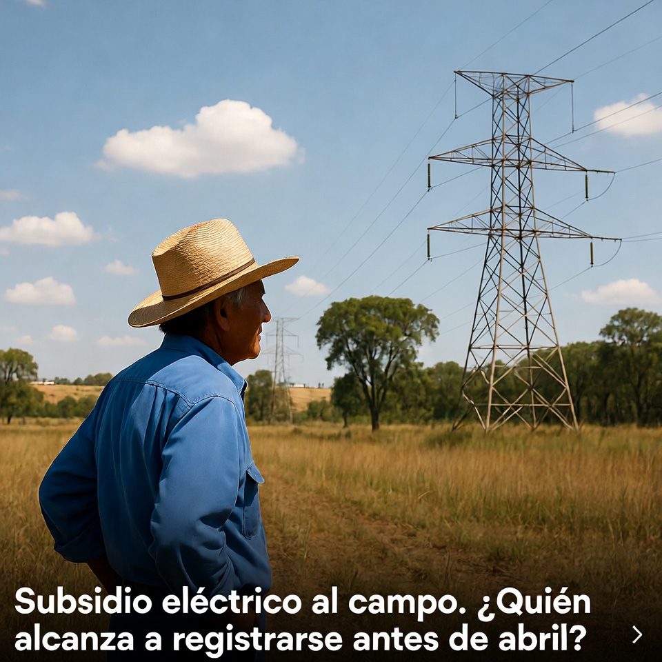 El 7 de enero de 2026, autoridades federales informaron la ampliación del periodo de inscripción y reinscripción al Programa Especial de Energía Eléctrica para el Campo (PEUA). El nuevo límite se fijó para el 28 de abril de 2026, con el objetivo de que más productores regularicen trámites y mantengan el beneficio tarifario. El programa está ligado al uso de energía eléctrica para riego agrícola, especialmente para bombeo de agua. La medida se comunicó como parte de facilidades administrativas y coordinación entre dependencias. Para miles de unidades de producción, la diferencia entre tarifa subsidiada y tarifa general cambia la viabilidad de una temporada.